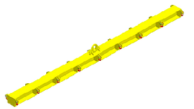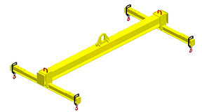 Barra de carga tipo travessa duplo T ou Barra H, com quatro pontos de elevação reguláveis nos eixos transversal e horizontal.