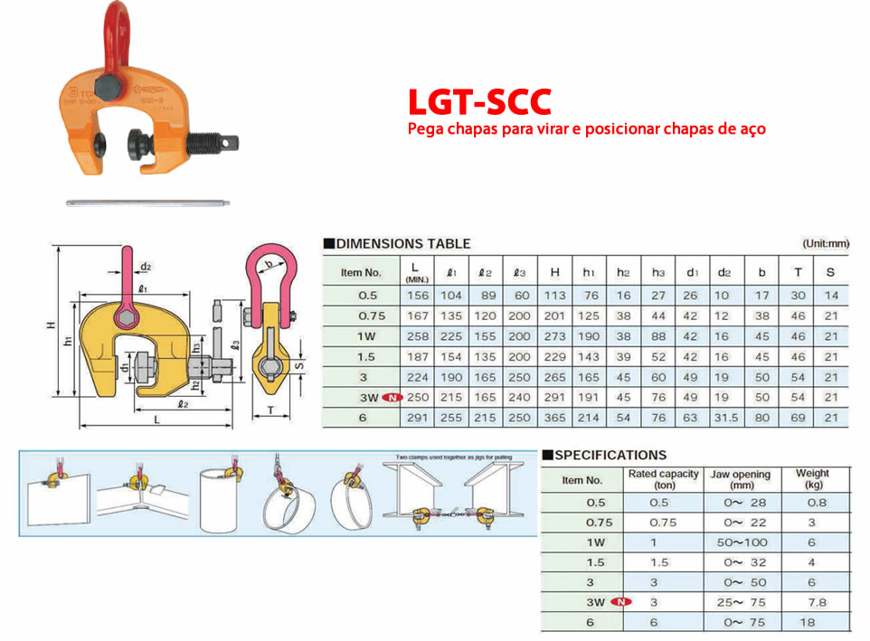 Pega chapas para movimentação, elevação e transporte de cargas.