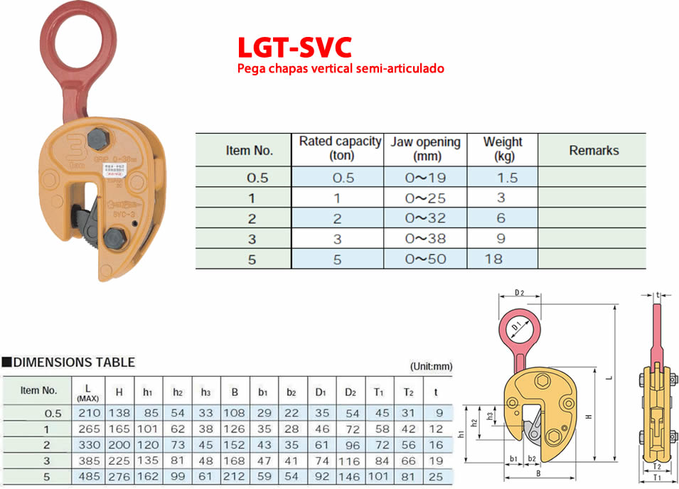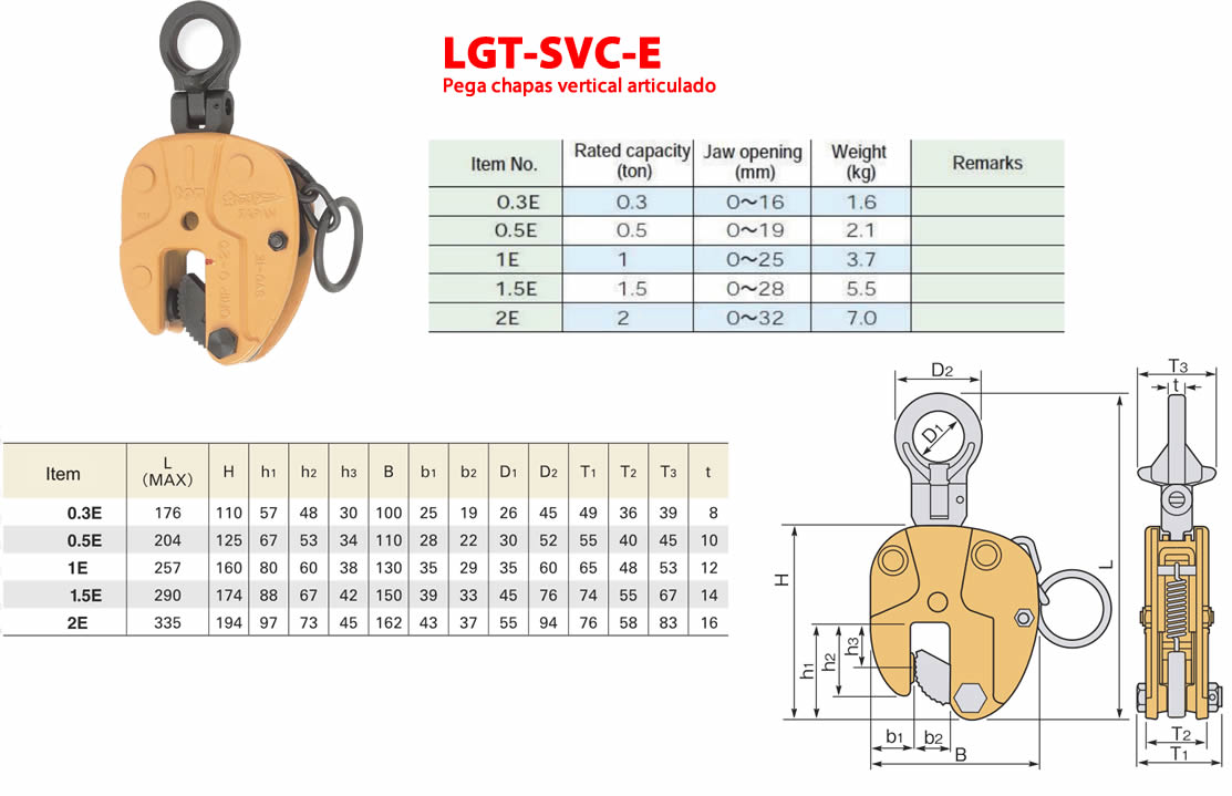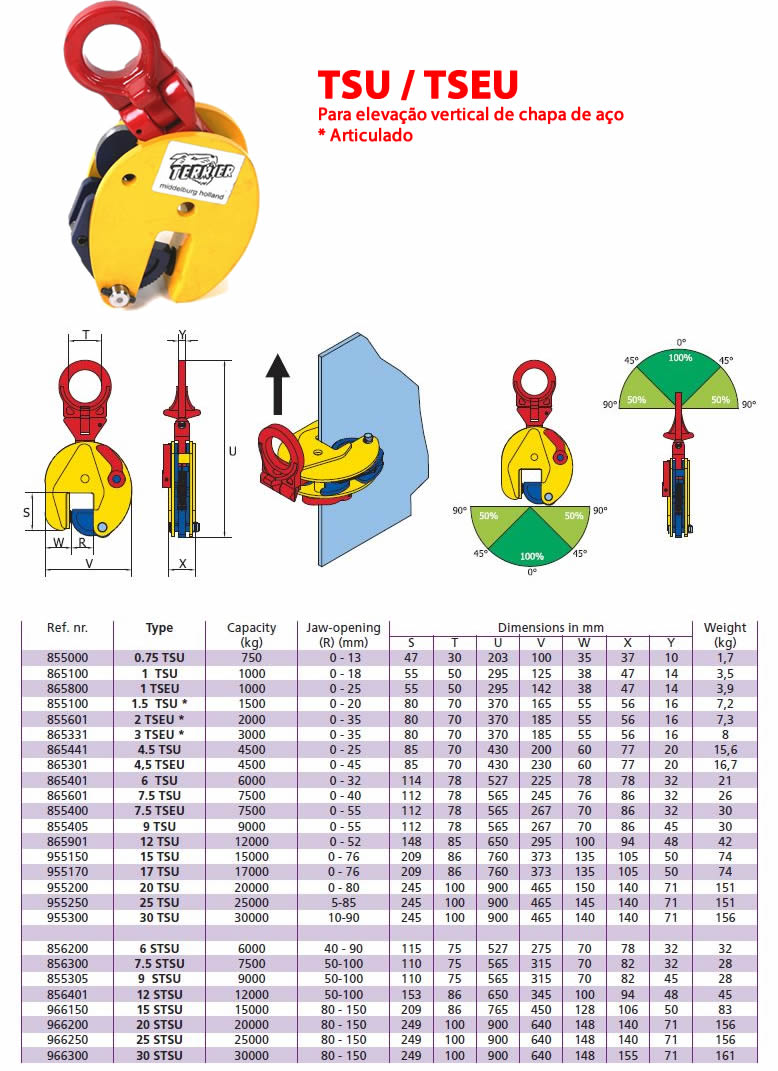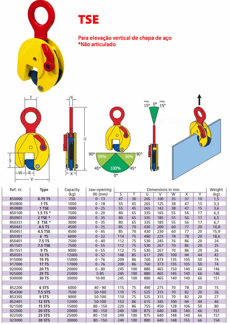 - Grampo pega chapas para elevação vertical, articulado e semi-articulado (TS – TSE – TSEU – NMMK – TSCC)